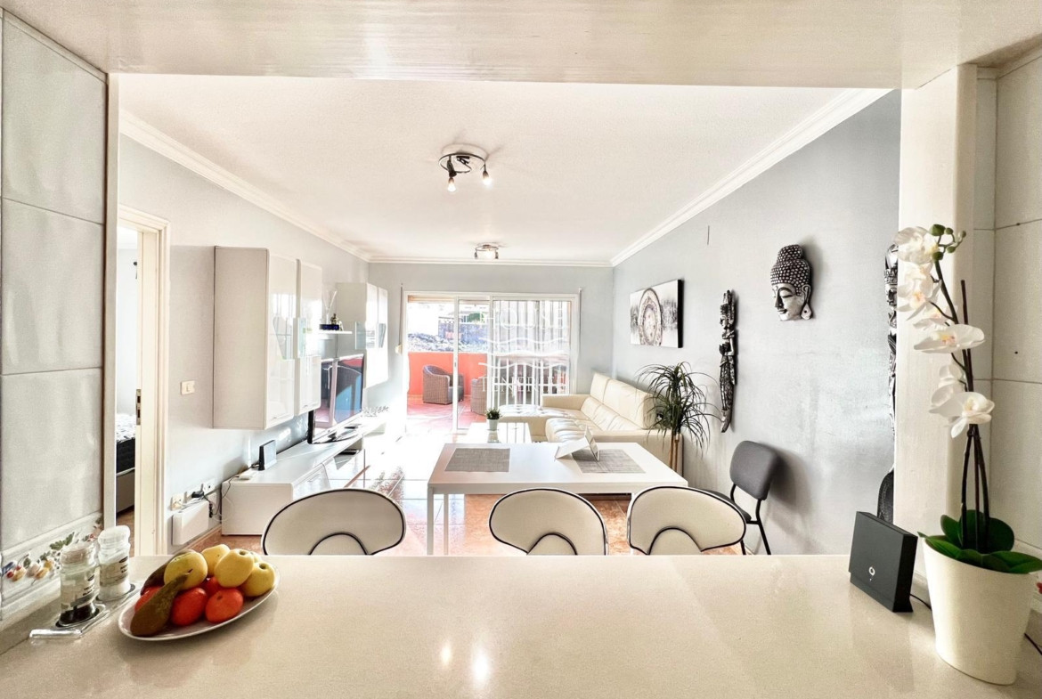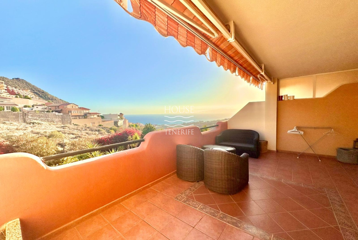 Located in one of the most desirable and serene areas of South Tenerife, this gorgeous apartment offers breathtaking panoramic views of the ocean. The property boasts two generously sized bedrooms with built-in wardrobes, providing ample storage space, and a bright and airy bathroom. The living area is spacious and welcoming, seamlessly connecting the dining area with a semi-open kitchen, perfect for both entertaining and everyday living.